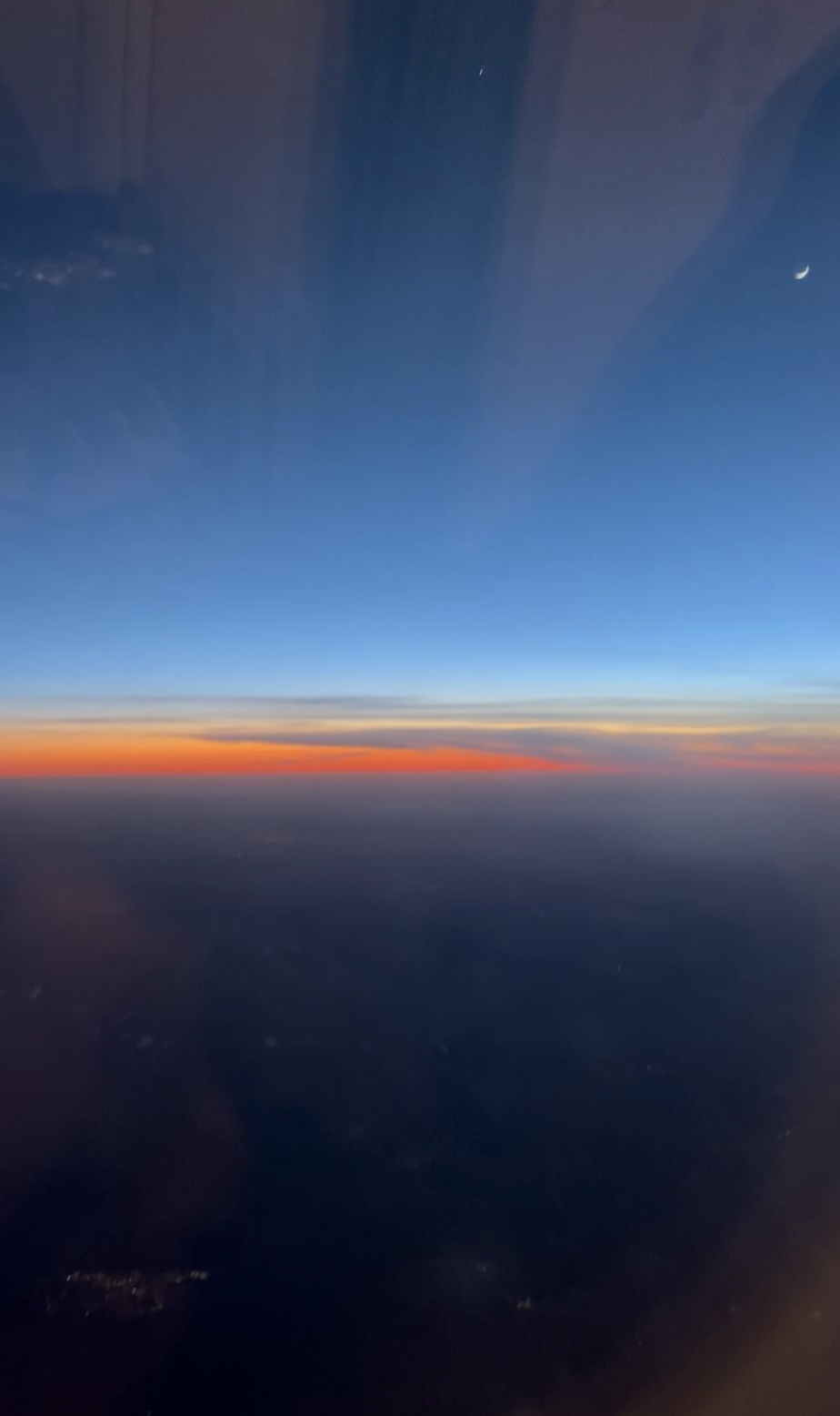 The airplane keeps chasing the vanishing light, as if it refuses to surrender the day. But we’re not flying fast enough to catch it. The sky darkens as quickly as I can write, words pouring out of me like the insistent rhythm of the song in my head.